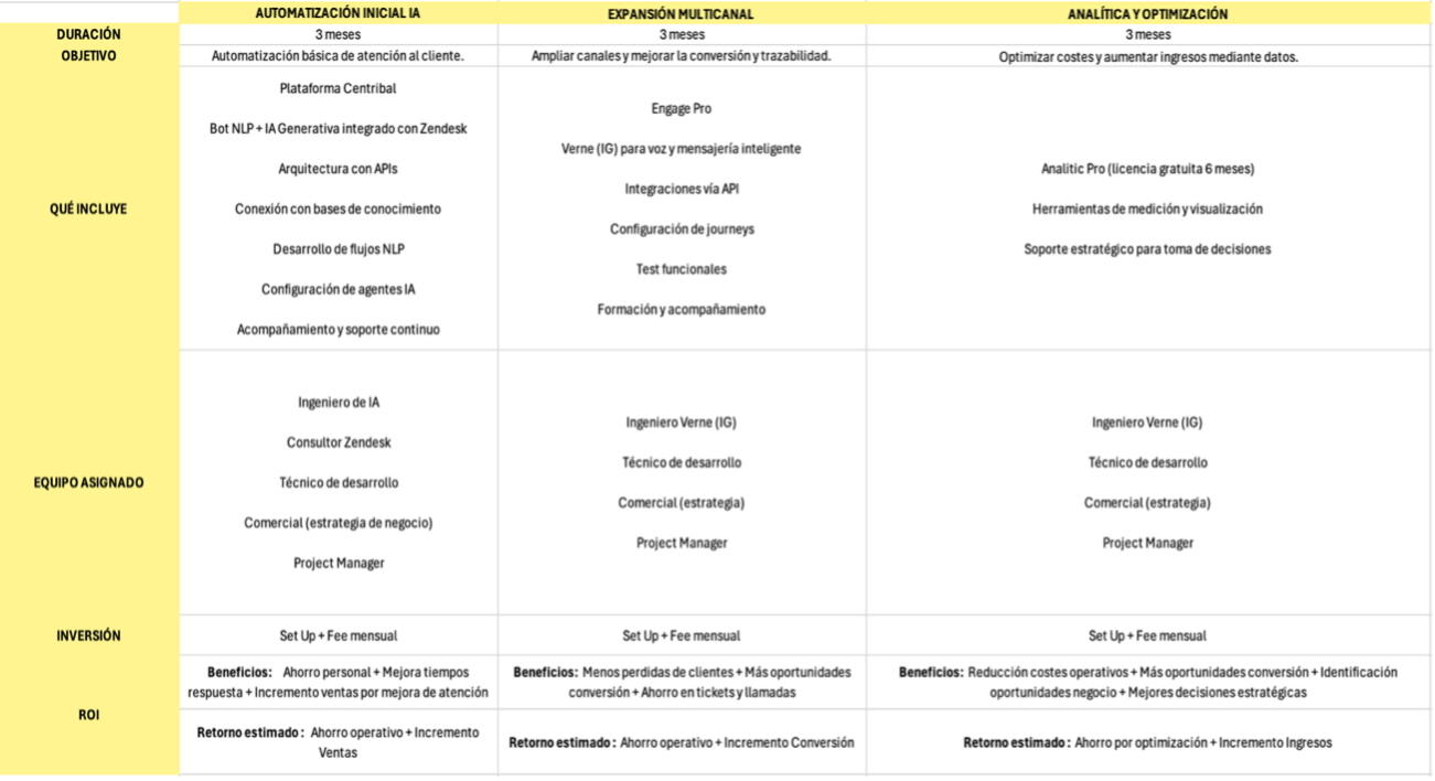 Beneficios: Ahorro personal + Mejora tiempos de respuesta + Incremento ventas por mejora de atención.